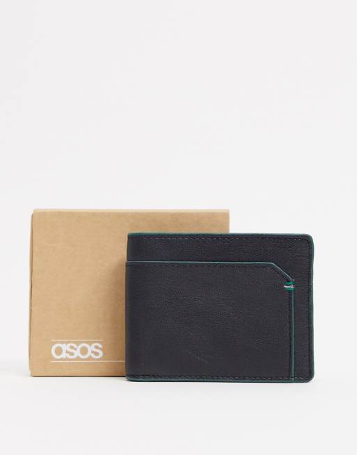 ASOS DESIGN – Geldbörse aus Leder mit Kartenfach in Schwarz