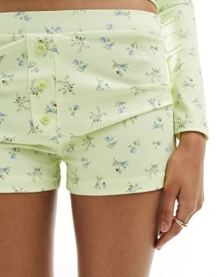 ASOS DESIGN – Gemütliche Hotpants in Zitronengelb mit Blümchenmuster, Kombiteil
