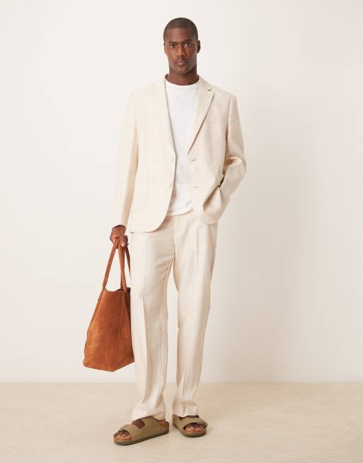 ASOS DESIGN – Gerade geschnittene Twill-Anzughose aus Leinen-Baumwollmix in Steinbeige