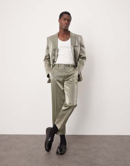 ASOS DESIGN – Gerade und kurz geschnittene Anzughose in Metallic-Silber
