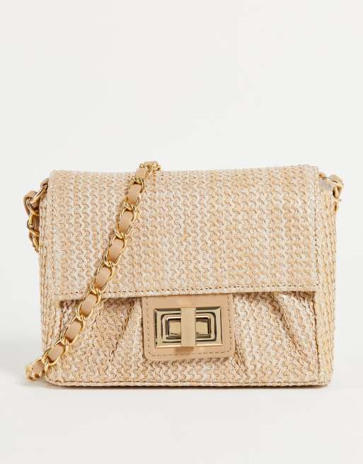 ASOS DESIGN – Geraffte Umhängetasche in der Farbe Stroh mit Tragekette