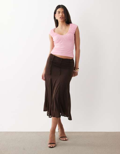 ASOS DESIGN – Gerafftes Netzstoff-Oberteil in Rosa mit U-Ausschnitt