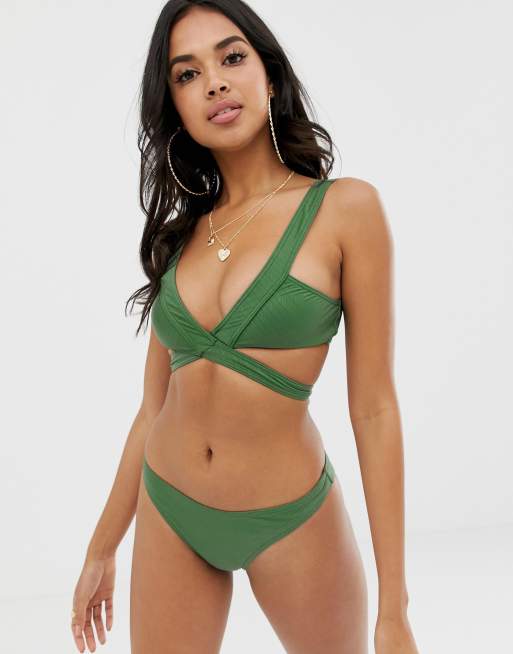 ASOS DESIGN – Gerippte, strukturierte Hüft-Bikinihose in Khaki