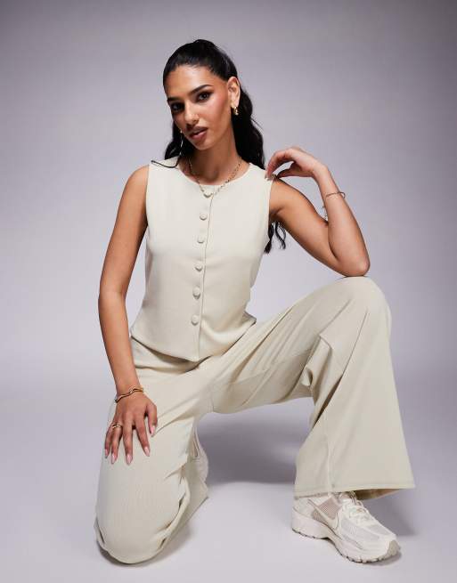 ASOS DESIGN – Gerippte Weste in Steingrau mit Knöpfen vorne, Kombiteil