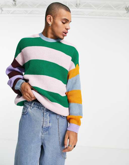 ASOS DESIGN – Gerippter Fischer-Strickpullover mit Streifenmuster