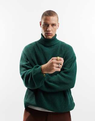 ASOS DESIGN – Gerippter Oversize-Fischerpullover in Grün mit Rollkragen