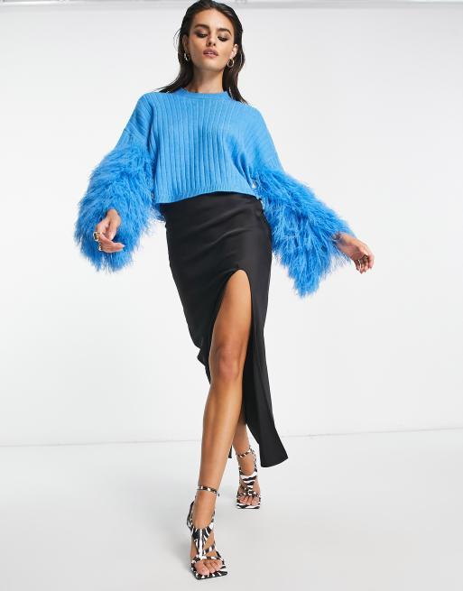 ASOS DESIGN – Gerippter Pullover in Blau mit Federärmeln