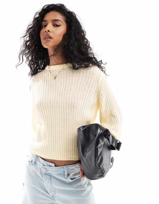 ASOS DESIGN – Gerippter Pullover in Cremeweiß mit Rundhalsausschnitt