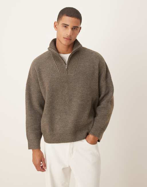 ASOS DESIGN – Gerippter Strickpullover in braun meliert mit extremer, kastiger Oversize-Passform und Stehkragen