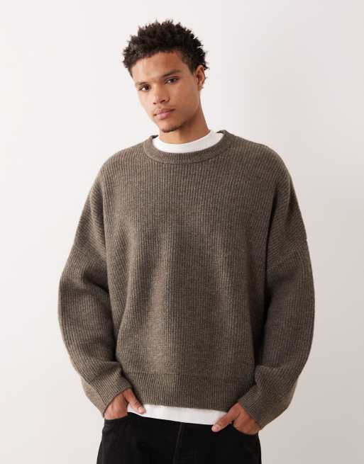 ASOS DESIGN – Gerippter Strickpullover in braun meliert mit extremer, kastiger Oversize-Passform