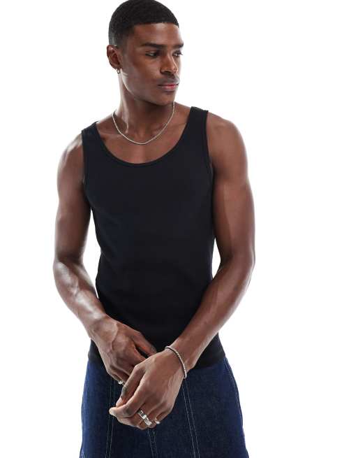 ASOS DESIGN – Geripptes Basic-Muskelshirt in Schwarz