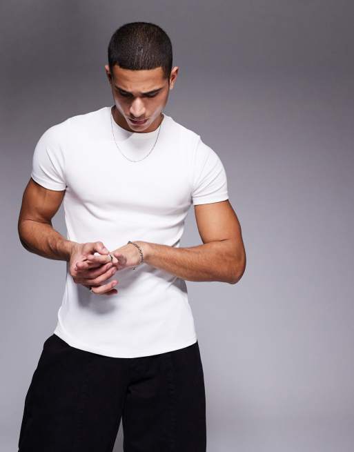 ASOS DESIGN – Geripptes Basic-T-Shirt in Weiß mit körperbetontem Schnitt