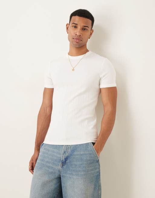 ASOS DESIGN – Geripptes T-Shirt in Weiß mit körperbetontem Schnitt