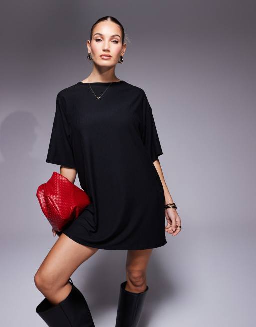 ASOS DESIGN – Geripptes T-Shirt-Minikleid in Schwarz