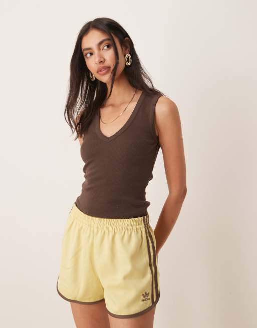 ASOS DESIGN – Geripptes Trägertop in Schokobraun mit V-Ausschnitt