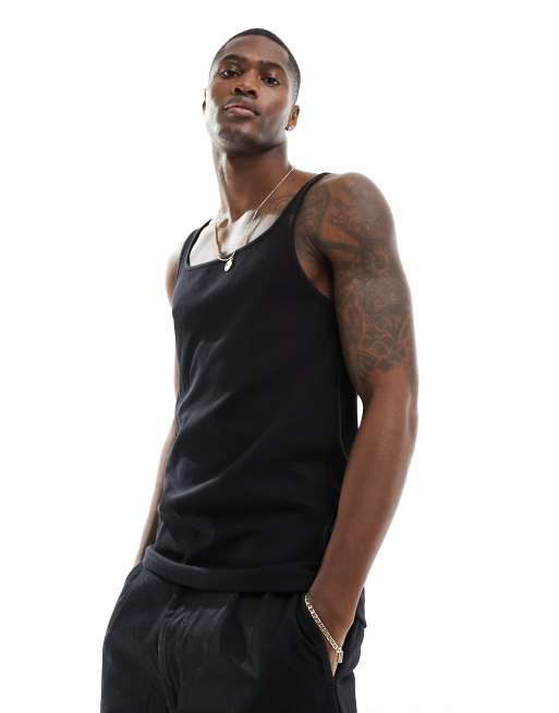ASOS DESIGN – Geripptes Trägertop in Schwarz mit eckigem Ausschnitt