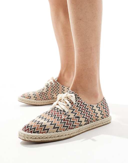 ASOS DESIGN – Geschnürte Espadrilles aus Canvas mit Aztekenmuster