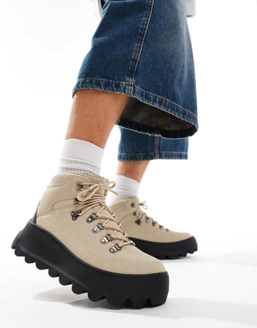 ASOS DESIGN – Geschnürte Wanderstiefel in Steinbeige mit dicker Sohle