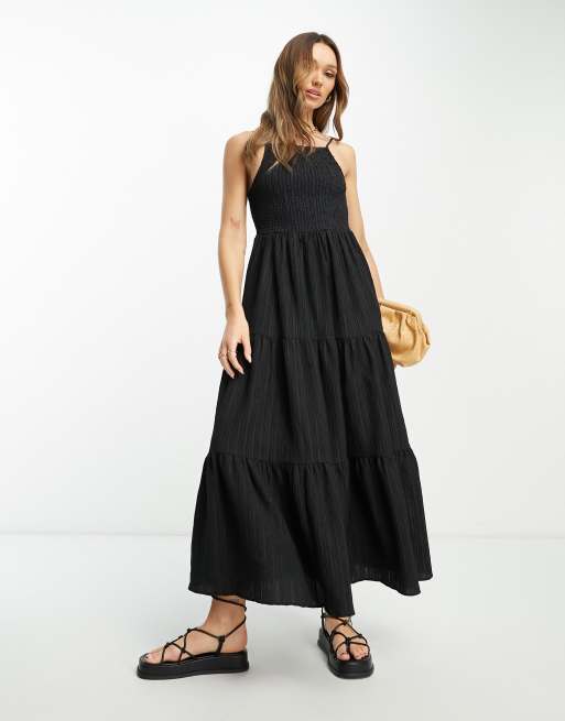 ASOS DESIGN – Gesmoktes Maxi-Sommerkleid in Schwarz mit eckigem Ausschnitt