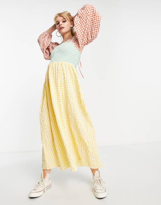 ASOS DESIGN – Gesmoktes Midikleid mit Vichykaro-Mustermix