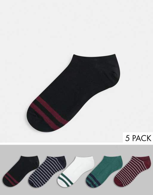 ASOS DESIGN – Gestreifte Sneakersocken in Edelsteinfarben im 5er-Pack
