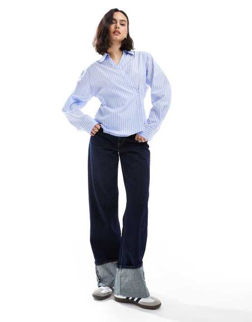 ASOS DESIGN – Gestreifte Wickelhemdbluse mit Cocoon-Ärmeln