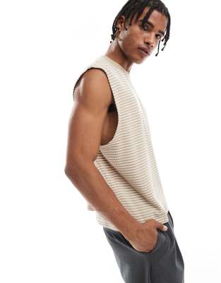 ASOS DESIGN – Gestreiftes Cropped Oversize-Tanktop in Beige und Weiß