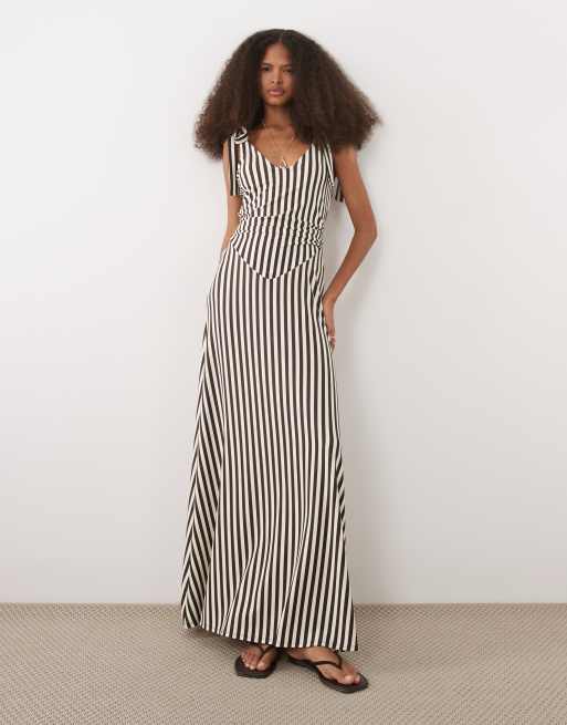 ASOS DESIGN – Gestreiftes Maxikleid mit gebundenen Trägern und V-Ausschnitt
