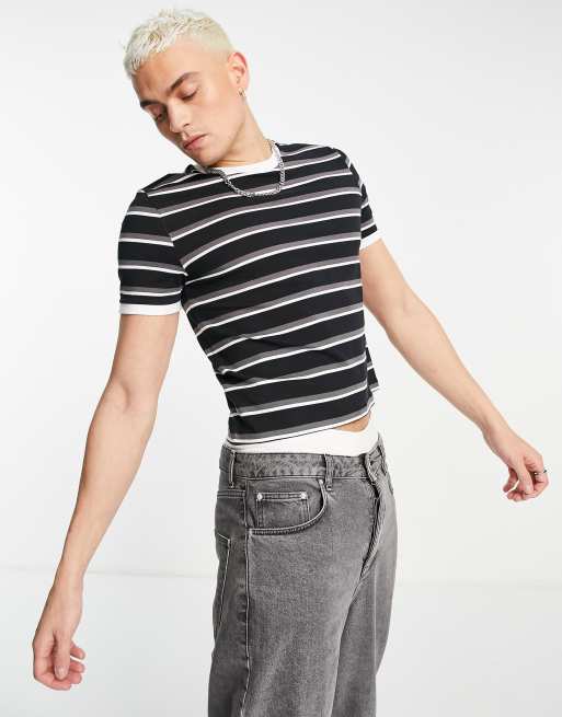 ASOS DESIGN – Gestreiftes T-Shirt mit geschrumpfter Passform in Schwarz & Weiß