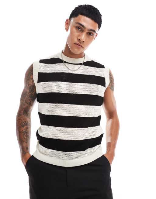 ASOS DESIGN – Gestreiftes Tanktop aus leichtem Strick in Schwarz und Weiß