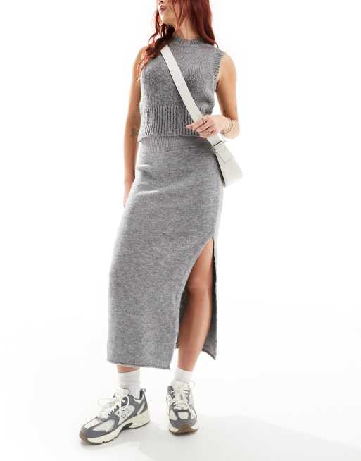 ASOS DESIGN – Gestrickter Midirock in Grau