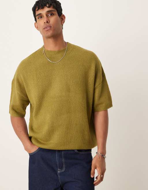 ASOS DESIGN – Gestricktes Oversize-T-Shirt in Khaki