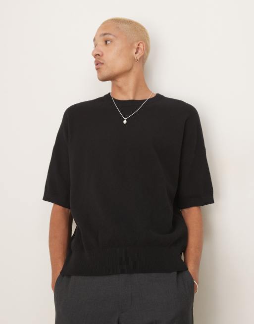 ASOS DESIGN – Gestricktes Oversize-T-Shirt in Schwarz mit Pikee-Struktur