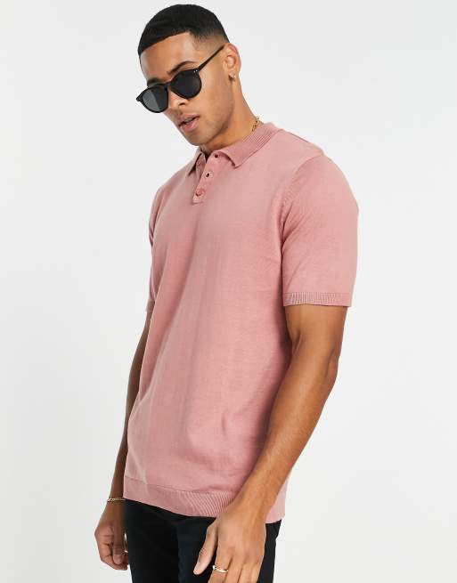 ASOS DESIGN – Gestricktes Polohemd in Rosa