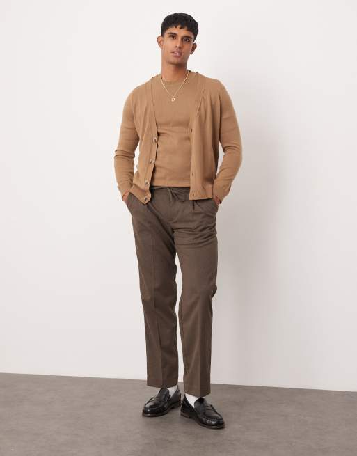 ASOS DESIGN – Gestricktes Set aus T-Shirt und Strickjacke in Braun