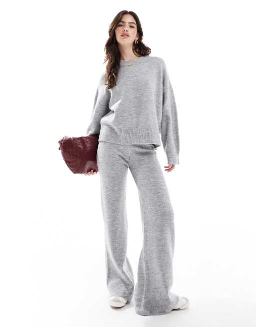 ASOS DESIGN – Gestricktes Set in Grau, aus kastigem Pullover mit Rundhalsausschnitt und Hose