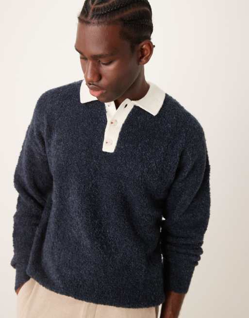 ASOS DESIGN – Gestricktes, strukturiertes Rugby-Polohemd in Marineblau mit lockerem Schnitt