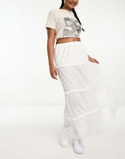 ASOS DESIGN – Gestufter Maxirock in strukturiertem Weiß