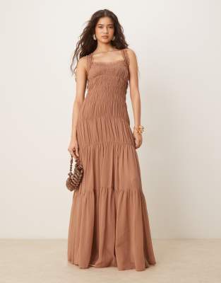 ASOS DESIGN – Gestuftes Maxikleid in Malve mit Rüschensaum