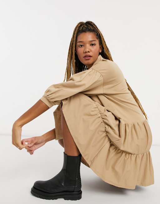 ASOS DESIGN – Gestuftes Mini-Hemdkleid in Camel