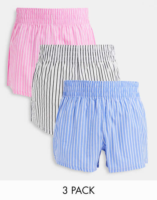 ASOS DESIGN – Gewebte Boxershorts mit Streifenmuster im 3er-Pack