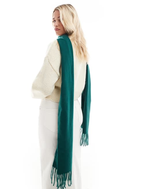 ASOS DESIGN – Gewebter Fransenschal in Tannengrün