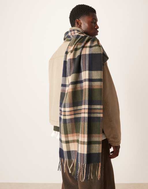 ASOS DESIGN – Gewebter, karierter Schal in Marineblau