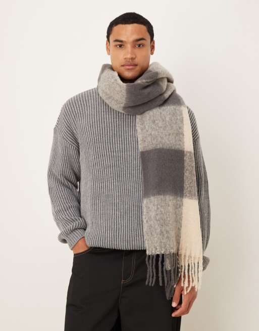 ASOS DESIGN – Gewebter Oversize-Schal mit Karomuster in Grau