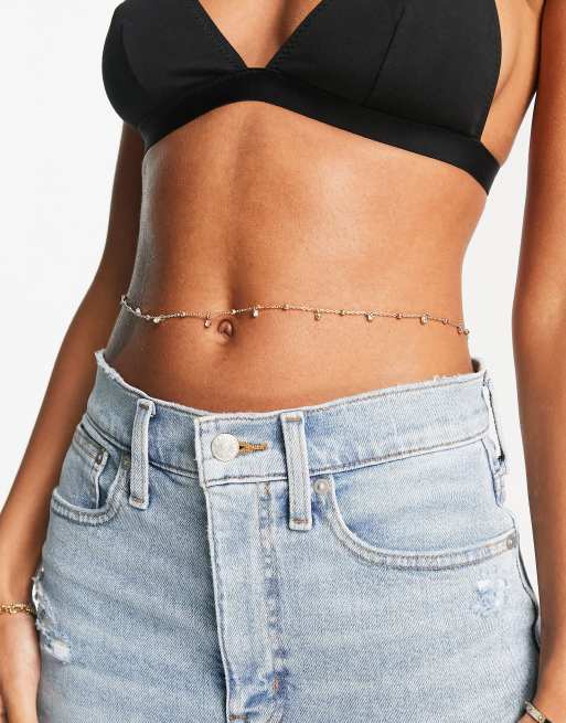 ASOS DESIGN – Goldfarbene Bauchkette mit Kristallsteinen