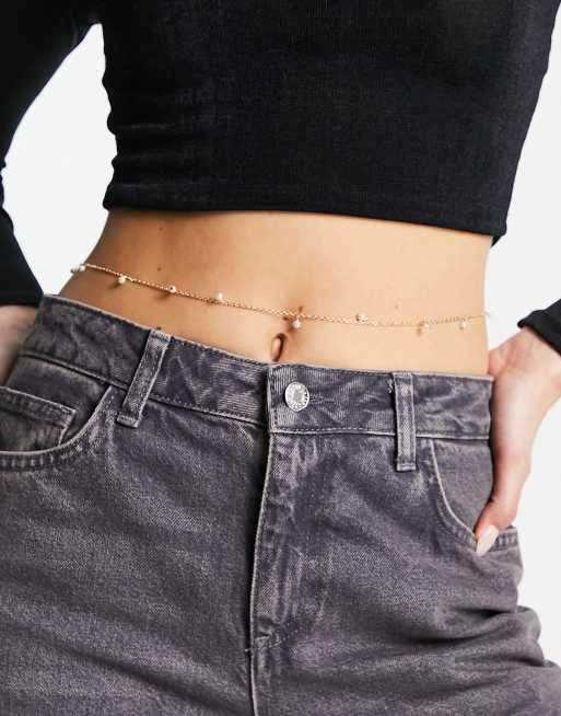 ASOS DESIGN – Goldfarbene Bauchkette mit Perlen