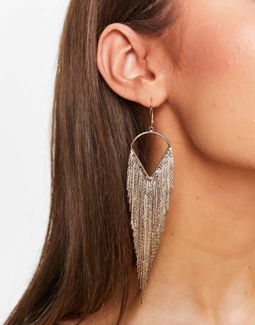ASOS DESIGN – Goldfarbene Hängeohrringe mit diagonal zulaufendem Kettendesign