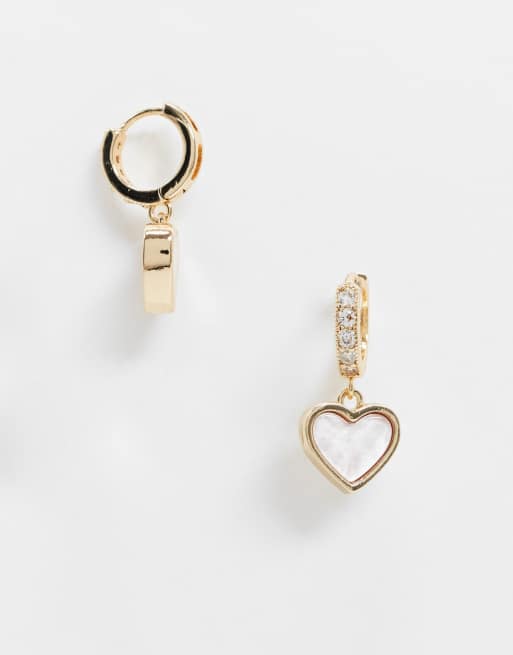 ASOS DESIGN – Goldfarbene Kreolen mit Kristallverzierung und rosa Herzanhängern