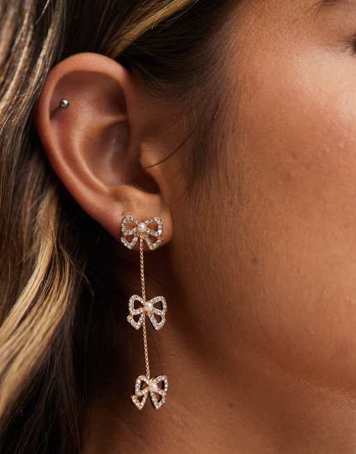 ASOS DESIGN – Goldfarbene Ohrringe mit kleiner Schleife und Kettendesign