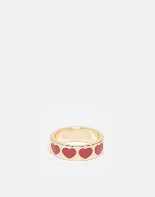 ASOS DESIGN – Goldfarbener Ring mit Herzdesign aus roter Emaille